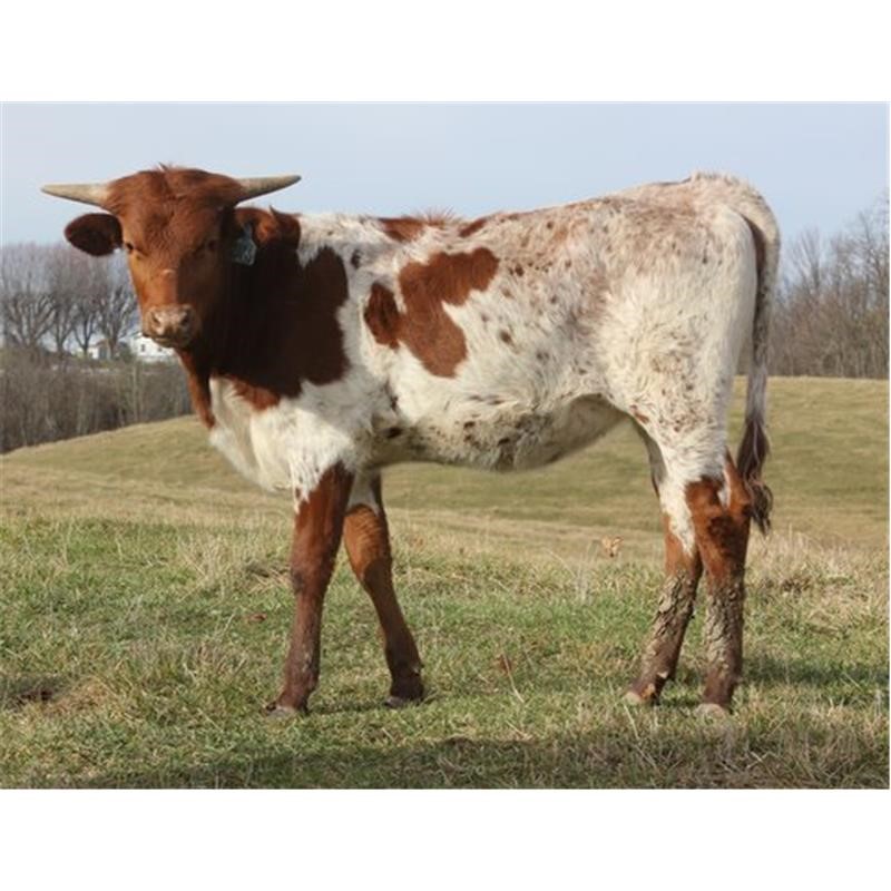 Dragon Fire is a show stopper and one of our most asked about cows. She is easy going and smooth sporting over 96" TTT and tipping the scales at over 1200 pounds. Come see her in person you won't regret it.