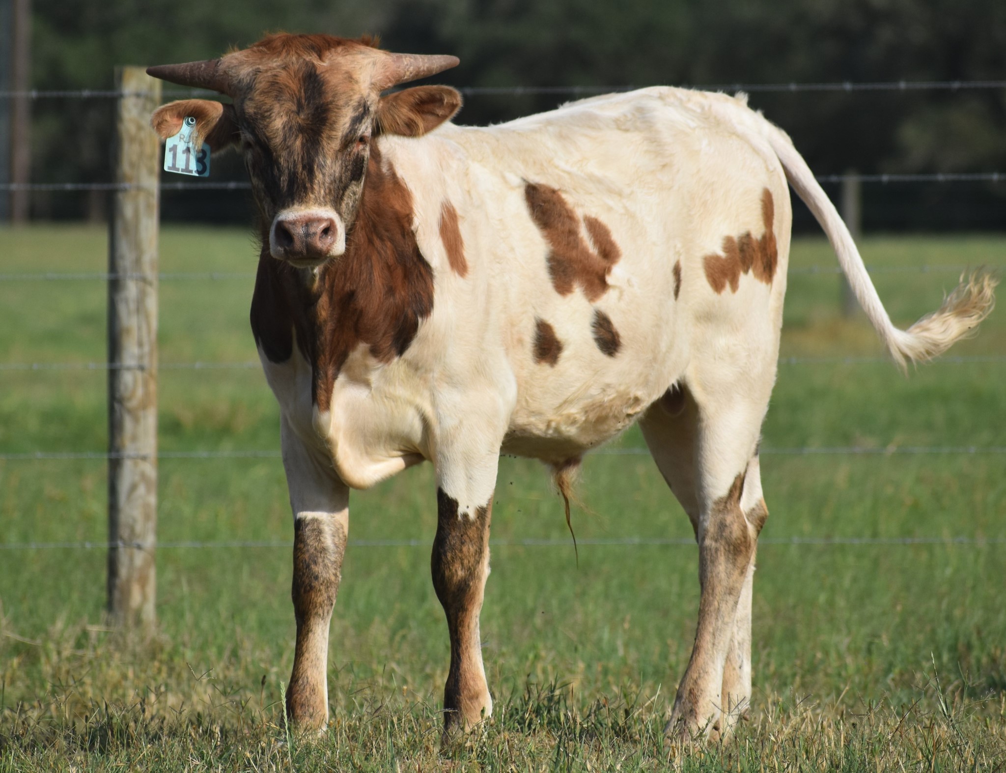 108+"TTT Cowboy Tuff Chex son out of a 6 years old 93"TTT Rebel HR daughter HR Awesome Reb that sold for 140K at the 2022 Legends Sale. This guy is a TANK with deep body and perfect conformation! His genetics make up is second to none with BL Rio Catchit, HR Slam's Rose, Top Caliber in the mix, and absolutely great and calm disposition. His offspring are OF THE CHARTS GORGEOUS and built nicely. Excited about his future with us and the industry. Thank you Richard & Jeanne Filip for the opportunity to purchase him, we are very grateful.