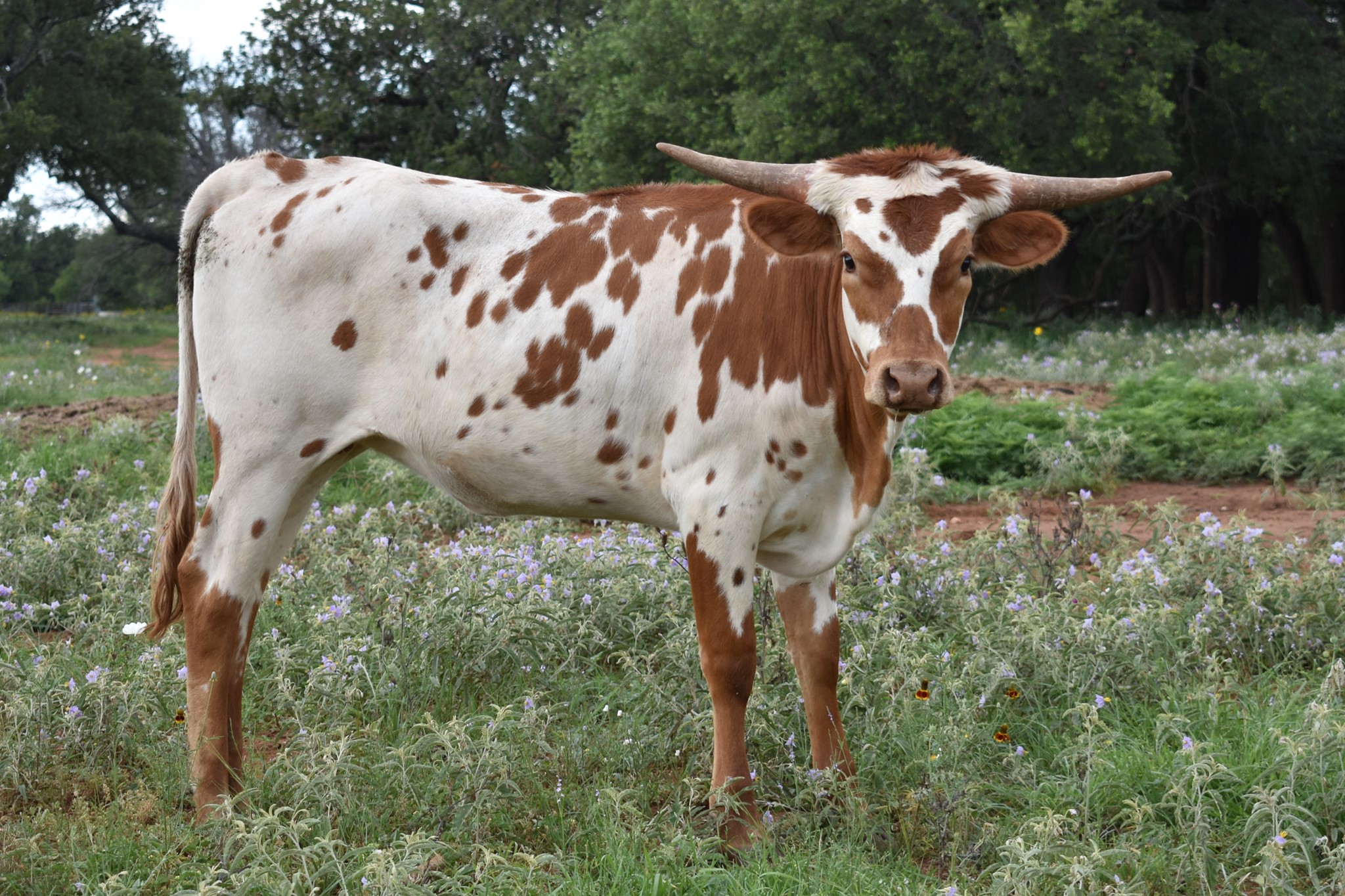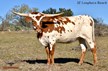Gorgeous CATCH daughter out of the twisty horned over 85"TTT IRON BEAUTY. This heifer catches our breath every time we go visit her and has it all. She checks all the marks...extremely well made, she is tall, thick with excellent conformation, beautifully marked with lots of color, her horns are pointing the right direction with a promising twist, and super sweet disposition. She is stacked with some of the best genetics in the breed going back to the over 87"TTT BHR Boomerang Beauty, Hunts Command respect, 90"TTT Drag Iron, and Cowboy Catchit Chex to just name a few. She is one we are very excited about and will grow to be a foundation female here. Named after our daughter Kambryn's nickname.