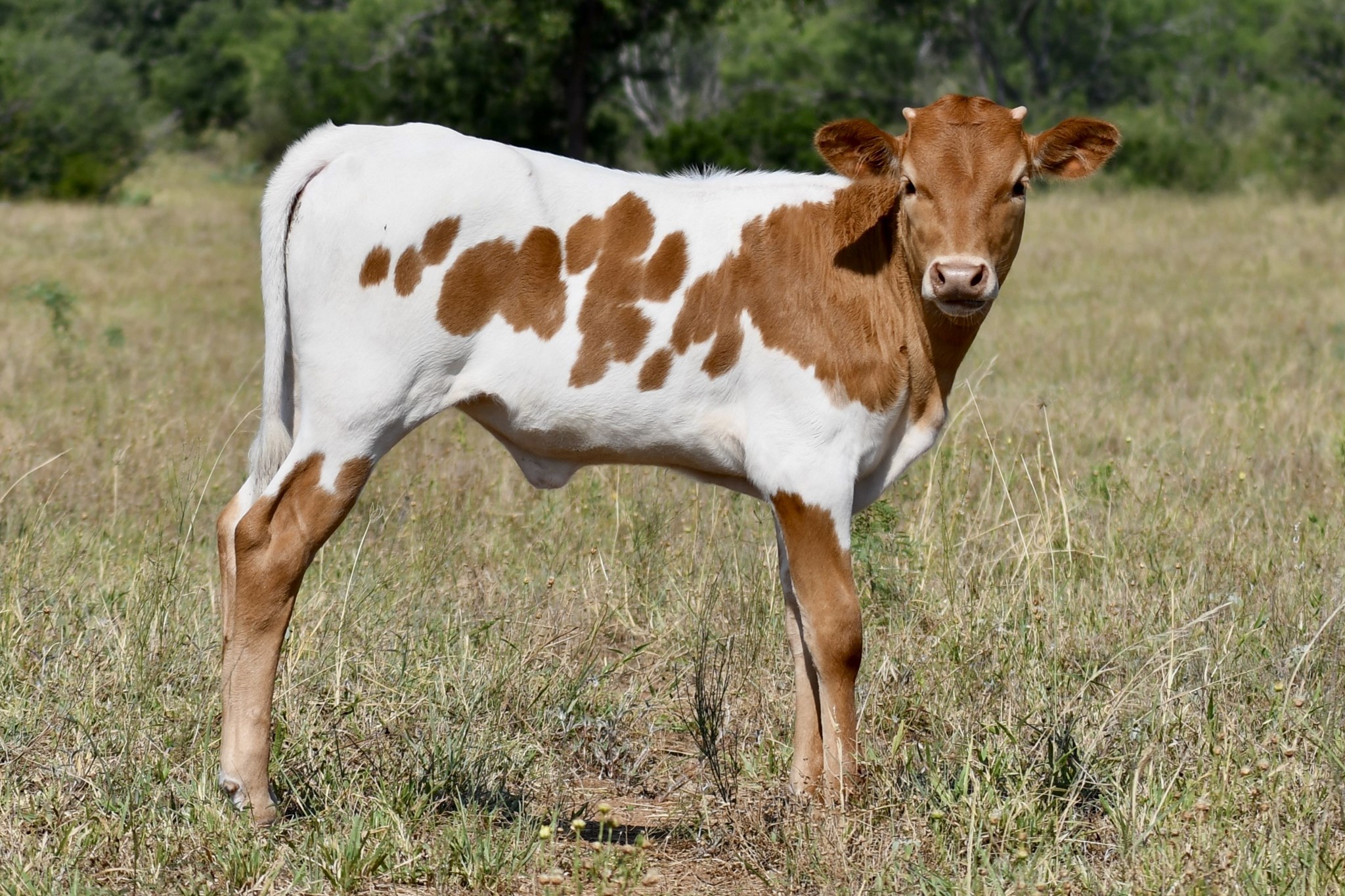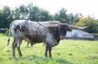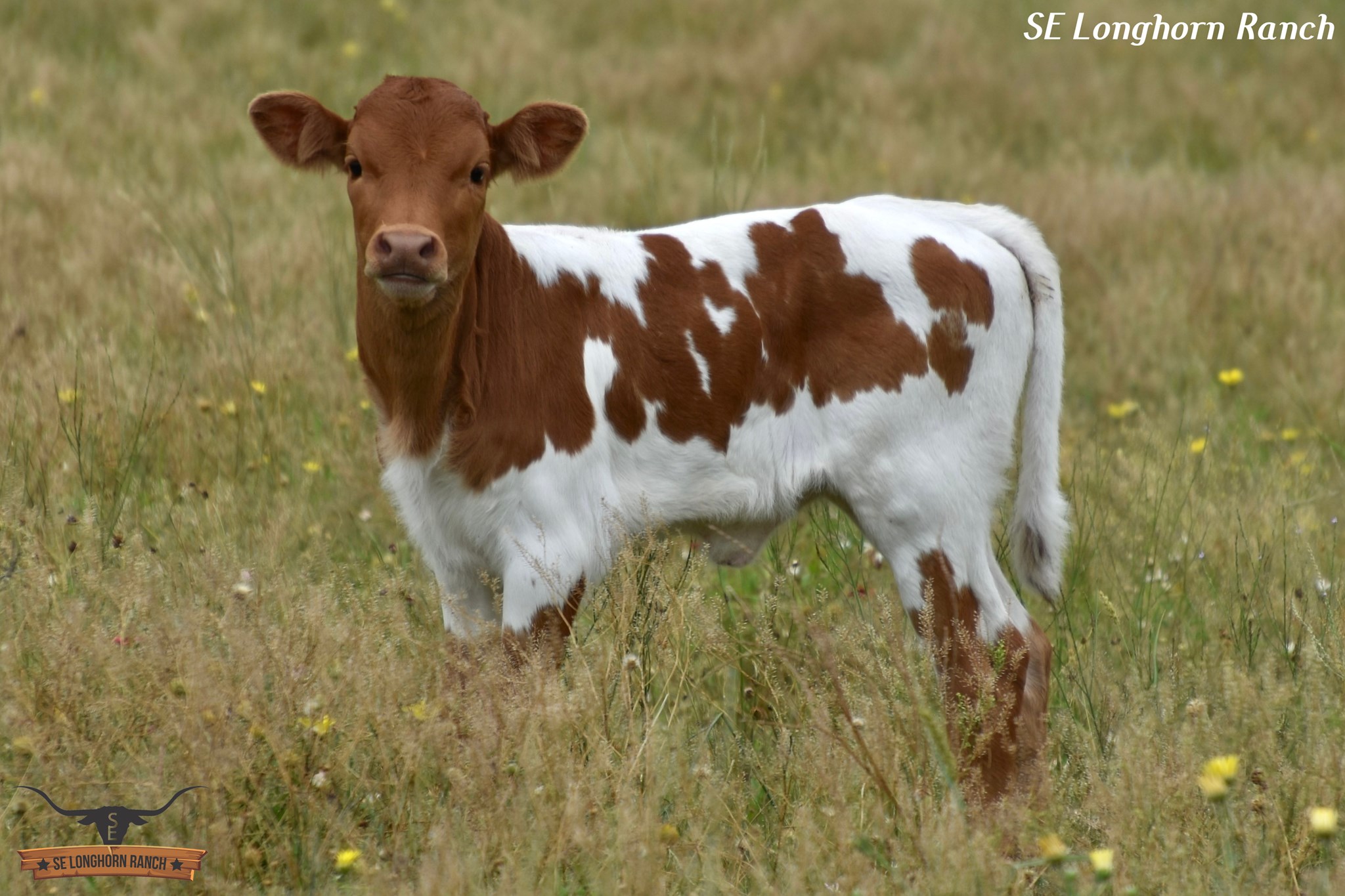 We are so very excited with the birth of this pretty girl, daughter of our bull RJF Cowboy Reb, son of the over107"TTT Cowboy Tuff Chex and out of a REBEL HR daughter, the $140,000 93"TTT HR Awesome Reb. On the maternal side she goes to the $280,000 over 100"TTT 2JB Cocaine Lady, $100,000 CV Cowboy Casanova, Cowboy Catchit Chex, 2 x the over 100"TTT BL Rio Catchit, the over 96"TTT triple twist cow Horseshoe J Journey, Fifty-Fifty BCB, Cowboy Up Chex, Concealed Weapon, 3 x JP Rio Grande, and 2 x the legendary 90"TTT Horseshoe J Important. Stacked with all these stellar genetics we are proud to have bred her. Built with great conformation, colorful, and her horns are promising a beautiful twist that we can see already developing. We are going to enjoy watching her grow and have big plans for her future.