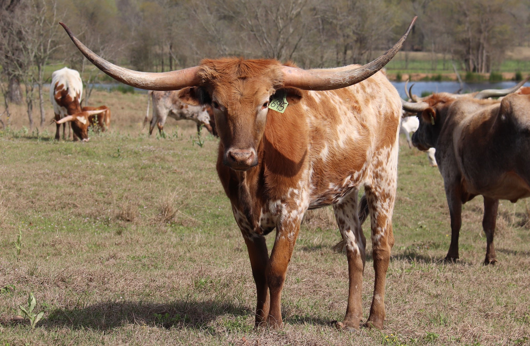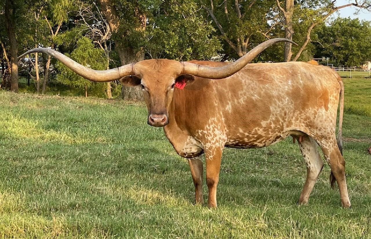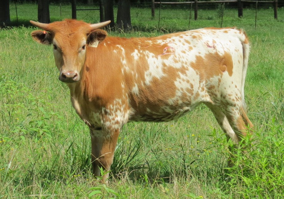 Sweet Adelita is a gorgeous young cow sired by Sweetwater BCB. His dam is the beautiful Palmetta Check cow that has the best udder and mothering ability. Sweet Adelita’s dam is the pretty Ringman daughter that is a beautiful mahogany red color with long heavy horns.